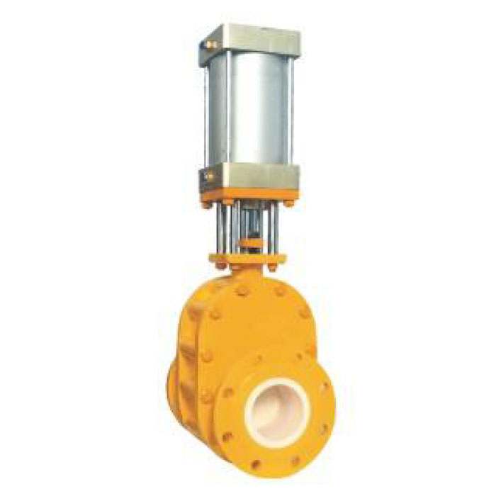 本閥適用于發電廠千灰系統、倉泵出料輸送,也可適用于礦山造紙、化工等個類有磨損的干粉塵、高硬度的顆粒例如(灰渣水)等介質,或有軟顆粒但又有腐蝕性的介質的管道上作啟閉之用。